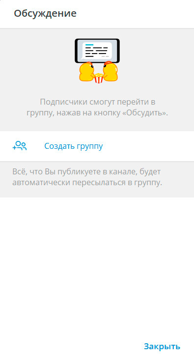 Открыть такую возможность в вашем телеграм-канале - пара пустяков: нужно зайти в меню канала, там выбрать "Управление каналом", и в строке "Обсуждение" нажать на ссылку "Добавить группу".
