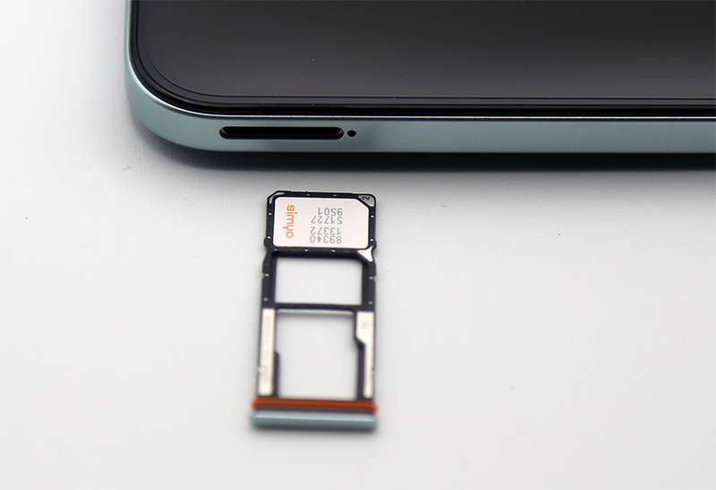 На левой грани - слот под вставку для двух симкарт и карты памяти.