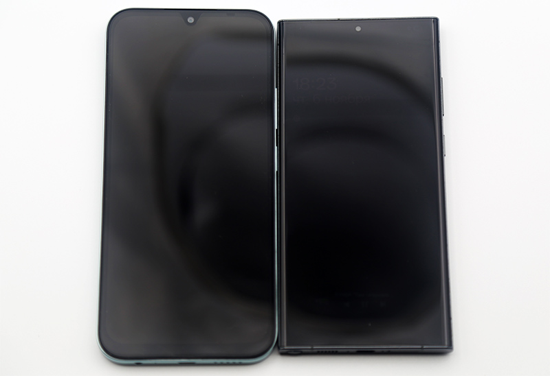 Вот этот смартфон (слева) рядом с моим Samsung Galaxy S23 Ultra. Этот смартфон даже больше - настоящая "лопата".