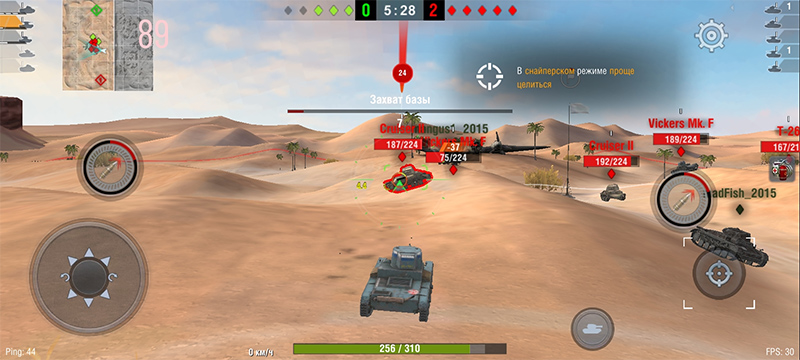 Танки на настройках качества по умолчанию (низких) все время держали 30 fps, и этот уровень не проседал.