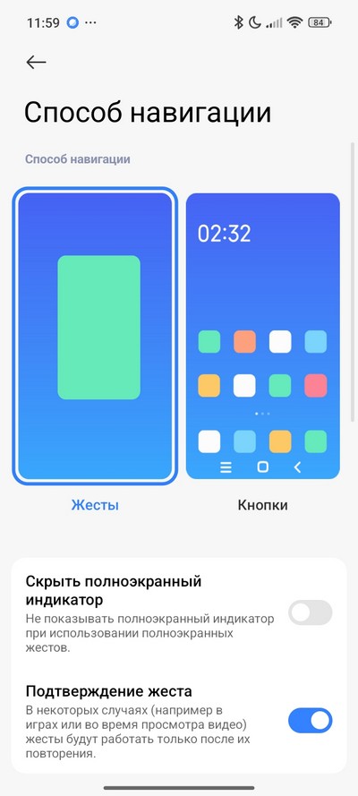 Как обычно для смартфонов Xiaomi, управление можно осуществлять с помощью экранных кнопок (настраиваемых) или с помощью жестов. Это настраивается в пункте меню "Безграничный экран". Также дополнительно можно настраивать функции кнопок и жесты.