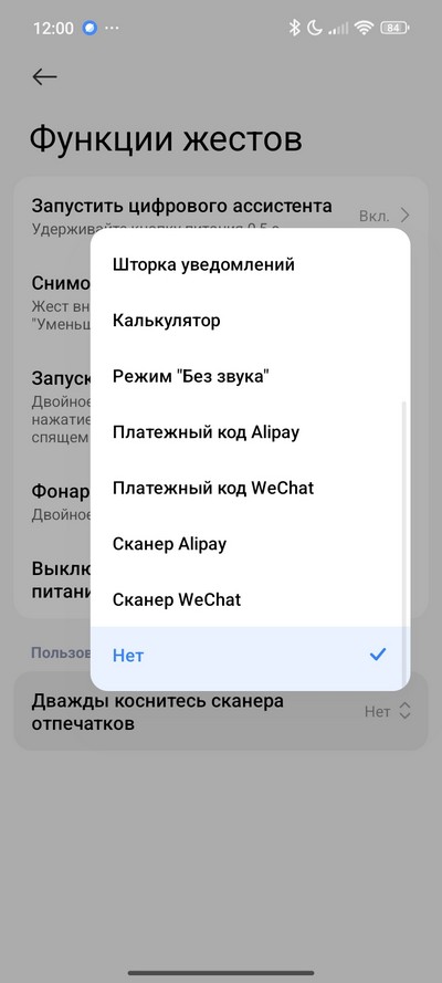 Для двойного касания по сканеру отпечатка тоже можно задать какое-то действие.
