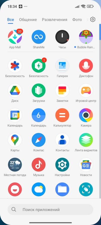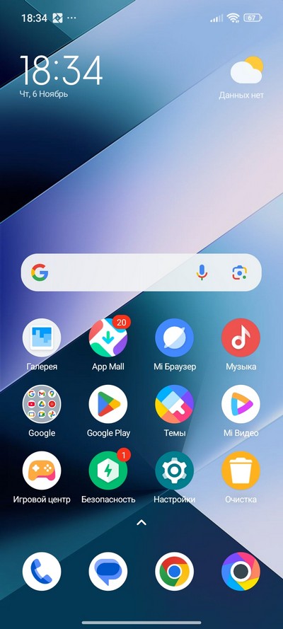 Главный десктоп и установленные приложения.