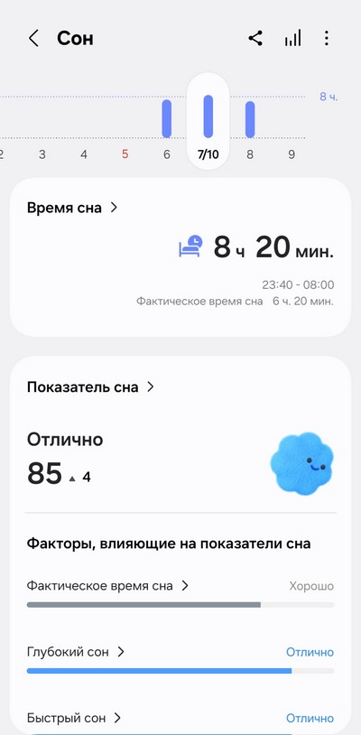 Ну и теперь давайте посмотрим, как собранные данные выглядят в приложении Samsung Health.