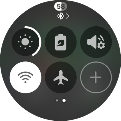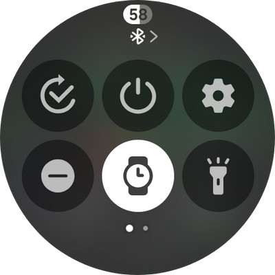 Свайп от циферблата вниз - - панель быстрого доступа: выбор режима (сон, театр), выключение, настройки, отключение любых уведомлений, режим AOD , отключение звука/вибрации, фонарик, яркость экрана, включение энергосбережения, громкость, Wi-Fi,  самолетный режим, подключение наушников, поиск смартфона и так далее. Быстрые переключатели - их количество и порядок следования - можно настраивать.