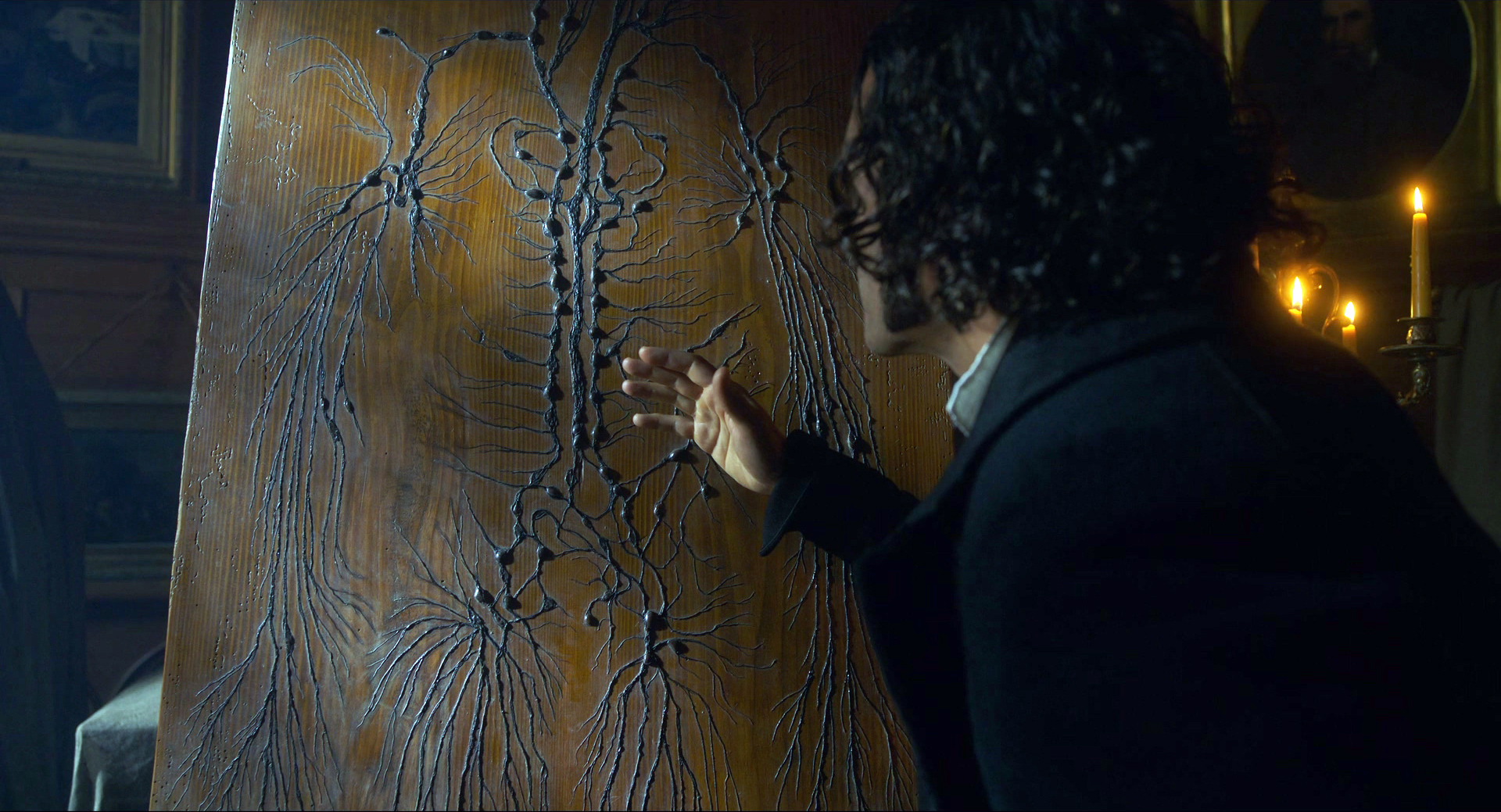 У Кристофа Вальца тут достаточно небольшая роль этого оружейного промышленника, который спонсирует эксперименты Франкенштейна в своих собственных интересах. В книге, насколько я помню, этого персонажа нет вообще, но здесь и действие из конца XVIII - начала XIX века перенесено в середину XIX века, Крымскую войну: видимо, режиссеру было важно показать, что Существо создано именно из тел солдат, павших на поле битвы - эдакая коллективная военная травма. Из этого, видимо, и возник производитель оружия, который страшно разбогател на военных поставках.