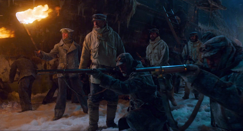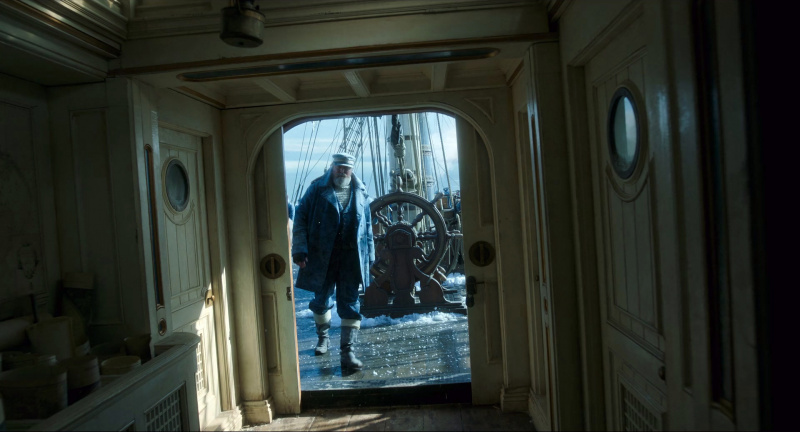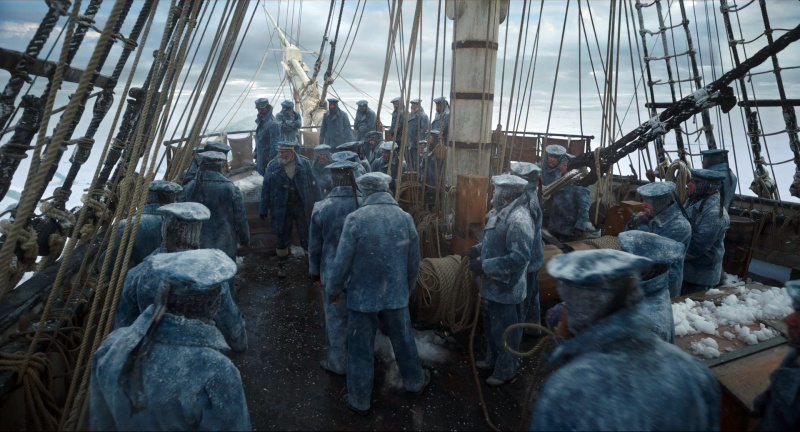 Там нарочито павильонная съемка с нарочито искусственными льдинами. Очередная цитата из предыдущих экранизаций романа.
