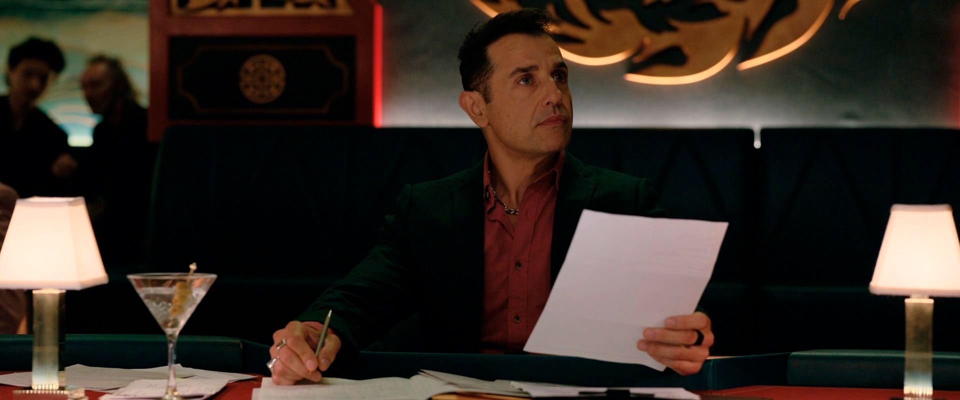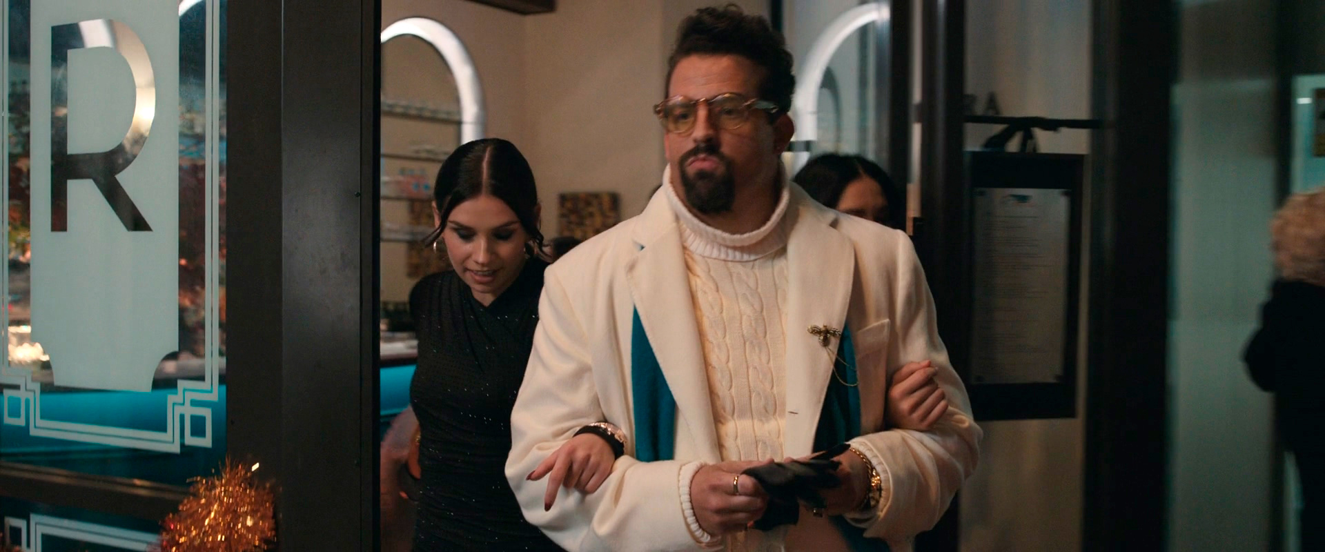 Еще тут есть Тони Шэлуб в роли главы Синдиката Лозини и Нат Вульф в роли его помощника Кинкейда. Шэлуб - актер отличный, но тут полнейший мискастинг - ну какой из него глава Синдиката? Если бы фильм был чисто пародийный - ну, тогда сошло бы, но здесь несколько другое дело. А вот Нат Вульф в роли Кинкейда - понравился, он такой довольно стебовый.