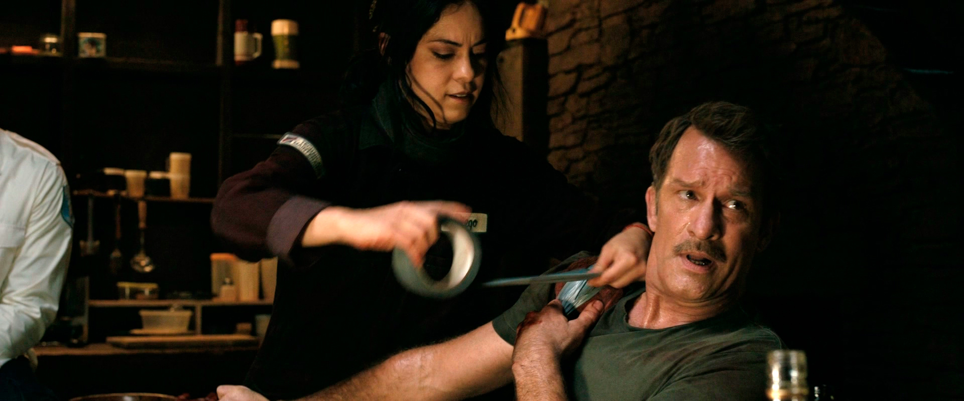 Грофельд, как и некоторые другие персонажи, здесь вносил определенную черноюморную нотку, которая отсутствовала у Паркера. (Вот у Дауни-младшего Паркер совершенно точно был бы заметно более юморной, но тут уж, извините, средств не хватило.) Также за определенный юмор тут отвечает боевая семейная пара Эд МакКей, в классном исполнении Кигэна-Майкла Ки и Бренда МакКей, которую тоже здорово сыграла Клер Ловеринг. Плюс еще тут есть забавный крепко пьющий водитель кореец - его изобразил Чай Хансен, и над ним остальные члены группы Паркера постоянно прикалывались.