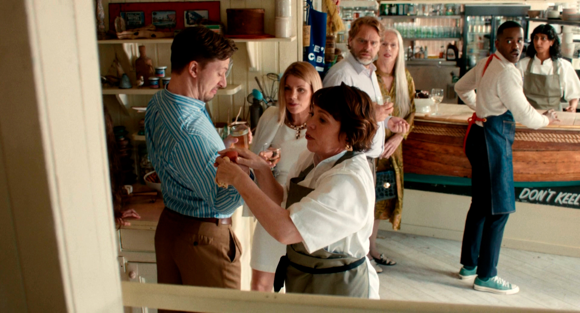 Так вот, тот самый ужин, где Тео напился и стал говорить гадости Айви, та тоже напилась и стала говорить гадости Тео, а гости-американцы решили, что это такая интересная британская игра и тоже стали говорить гадости друг другу. Видимо, подразумевалось, что это такой тонкий юмор и тонкая психологическая игра, но на наш с котом Бубликом взгляд это все смотрелось крайне натянуто, и никакого юмора - ни черного, ни белого - мы там не обнаружили.