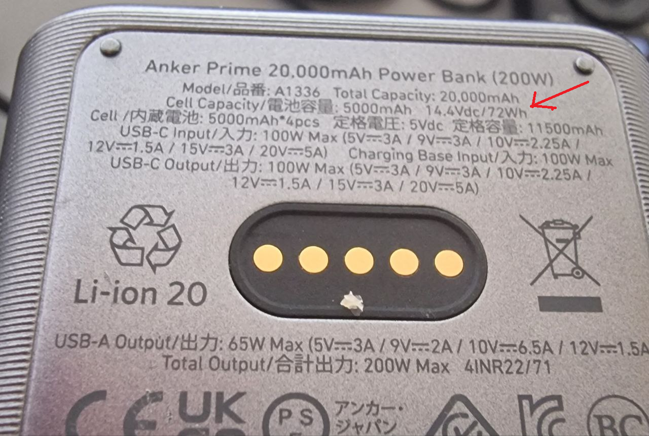Т.е. повербанка 20 AH * 5 V = 100 WH