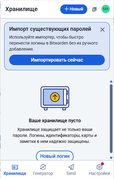 Если вы раньше использовали какие-то менеджеры паролей или же сохраняли логины-пароли в браузере, то эти данные можно импортировать в Bitwarden - он понимает почти все менеджеры паролей и пароли из браузеров. Однако это не получится сделать автоматически: вам из старого менеджера или браузера сначала надо будет самостоятельно сделать экспорт логинов-паролей в требуемый формат файла (csv, json, xml и так далее), и вот его Bitwarden может импортировать, чтобы потом использовать эти данные.